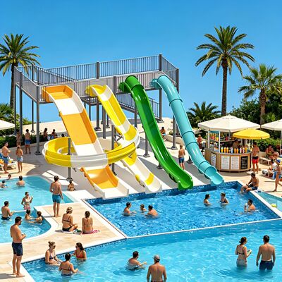 | Material | Tobogán de fibra de vidrio, Acero galvanizado sumergido |